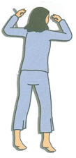 Freefall position: People who lie on their stomachs, with their heads turned to the